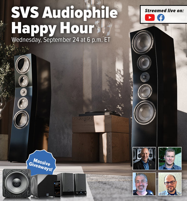 Clear your calendar as the SVS Audiophile Happy Hour returns this Wednesday, September 24, at 6 p.m. ET as we go live with giveaways, home theater tips, listening recommendations, and the normal fun on the SVS Facebook page and YouTube Channel